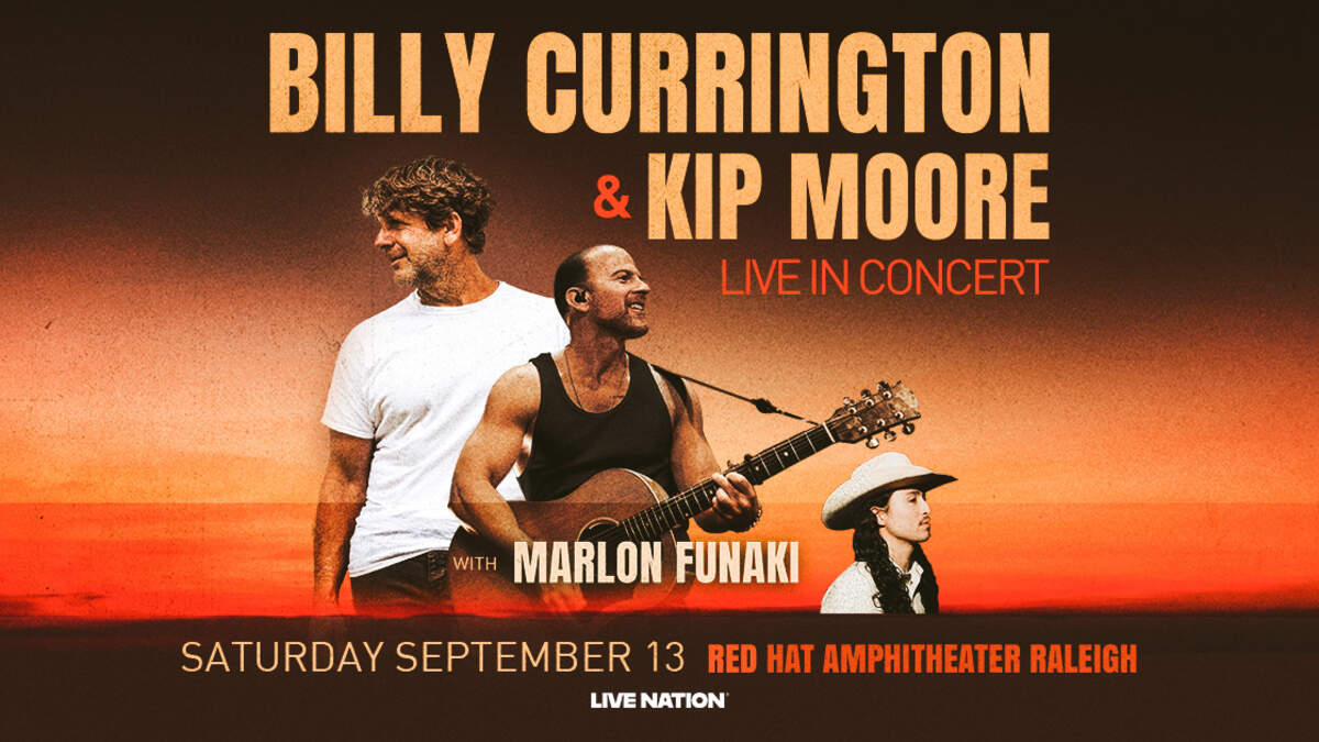 Don't miss Billy Currington and Kip Moore! Coming to Red Hat Amphitheater Raleigh on Saturday 9/13 with Marlon Funaki! Catch our Street Team at this event! Sponsored by Coastal Credit Union! Know before you go! Check the latest forecast from our partners at CBS 17.