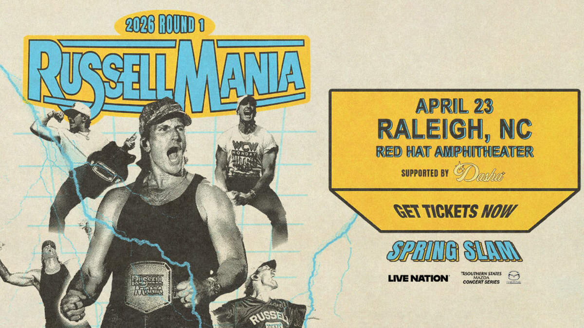 5. PRIZE(S). 1 pair (2 tickets) to see Russell Dickerson at Red Hat Amphitheater on April 23, 2026.